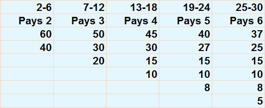 - 6 or fewer players pays top two